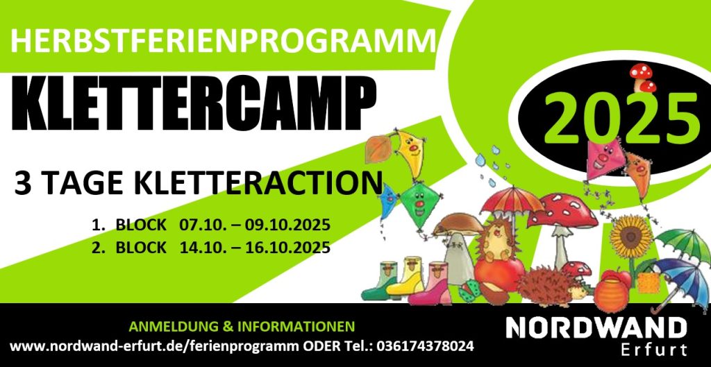 Auch in den Herbstferien 2025 haben wir wieder das 3-tägige Klettercamp für euch am Start: Dieses mal gibt es zwei Termine. Vom
